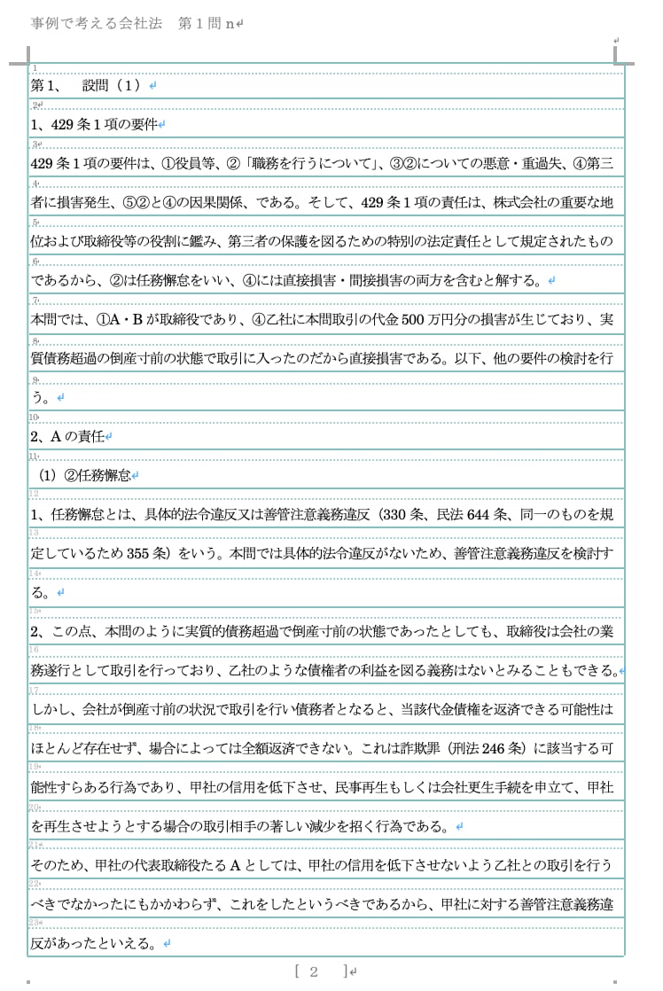 ※本商品は市販書籍『事例で考える会社法〔第2版〕』の内容理解を補助するための独自に作成した参考答案例であり、出版社・著者とは一切関係ありません。