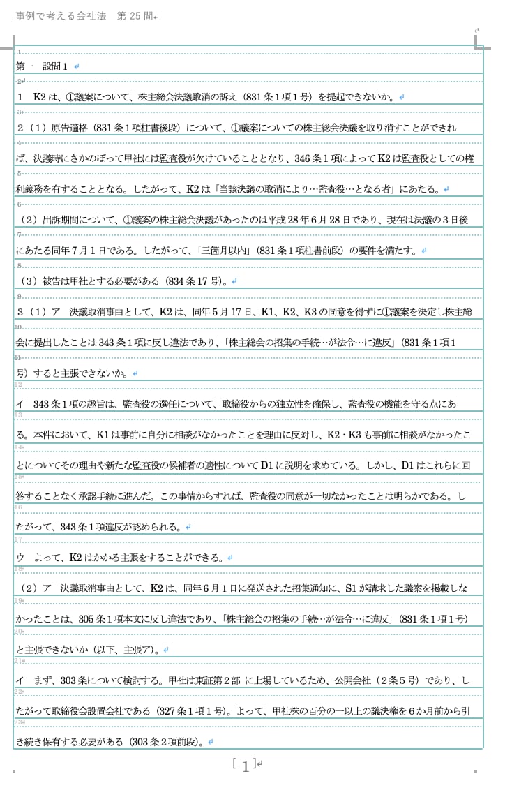 会社法の定番演習書である「事例で考える会社法(第2版)」の全25問の解答例集となります。